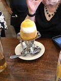 Vanilla & chocolate ice cream filled with nuts, cherries & coated with a chocolate shell served with fresh whipped cream.